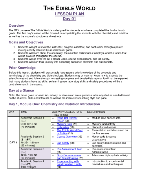 Lesson Plan – Food Chemistry Course